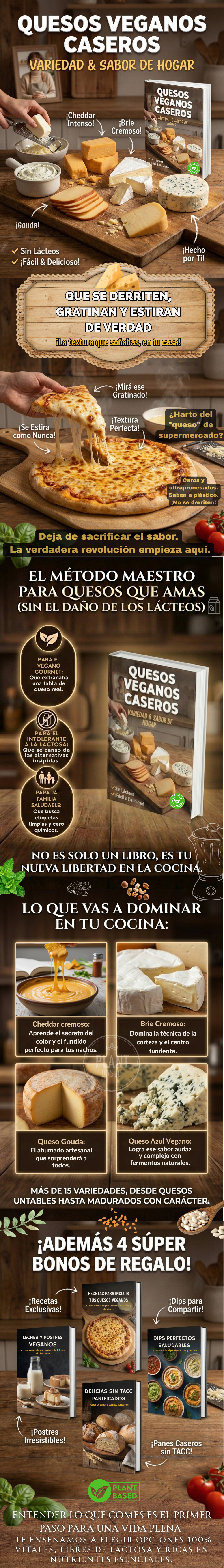 No es necesario ser profesional. Estas recetas de quesos veganos caseros están diseñadas con un paso a paso sencillo para que obtengas texturas perfectas desde el primer intento.